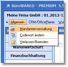 1. Klicken Sie mit der Maus im Hauptmenü auf "Allgemein > Mandantenverwaltung".