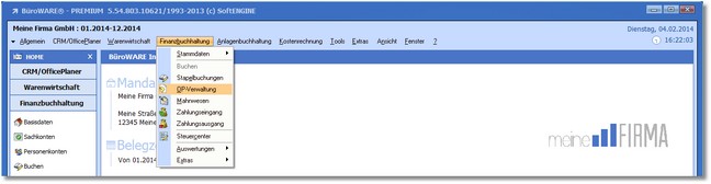 1.Um einen OP in Teilzahlungsbeträge umzuwandeln, klicken Sie im Hauptmenü der Finanzbuchhaltung mit der Maus auf "Finanzbuchhaltung > OP-Verwaltung".