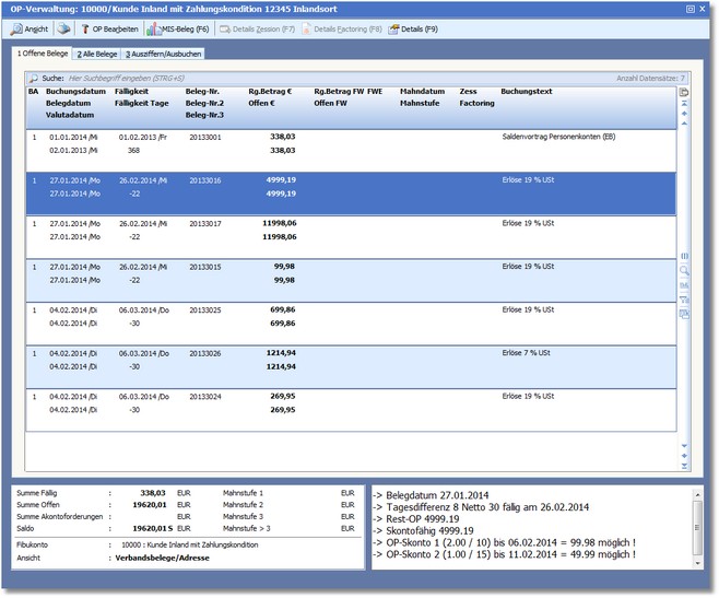 Das Programm öffnet die OP-Verwaltung für Personenkonten.