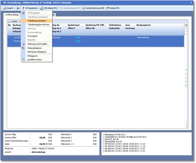 | 1. | Wählen Sie in der OP-Verwaltung der entsprechenden Adresse einen Teilzahlungs-OP aus. |