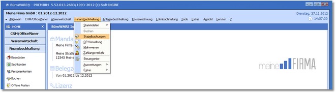 1. Öffnen Sie den Buchungsbereich über das Hauptmenü „Finanzbuchhaltung > Stapelbuchungen".