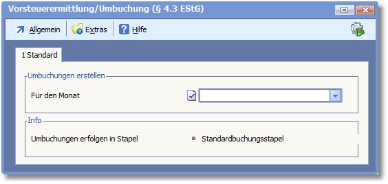 Das Programm öffnet den Dialog "Vorsteuerermittlung/Umbuchung".