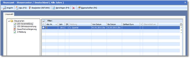 << Hier KLicken um eine Inhaltsübersicht anzuzeigen >> Navigation: Finanzbuchhaltung > Monatliche/periodische Arbeiten > Steuercenter |