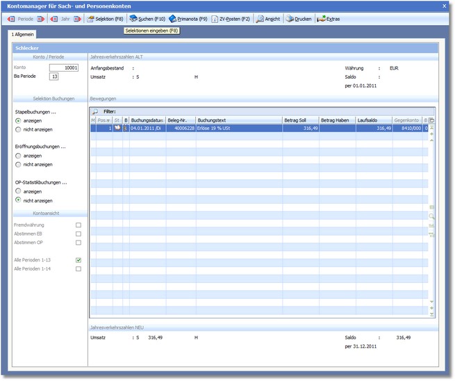 Mit diesen beiden Buttons können Sie sich die Buchungen einzelner Perioden anzeigen lassen.