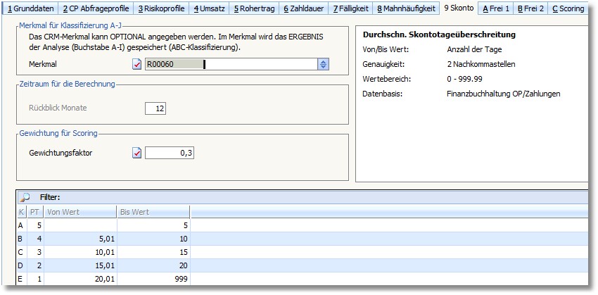 Bei 9 Rechnungen und 3 Mahnungen mit Stufe 1 wäre dieser Kunde dann schon B-Kunde.