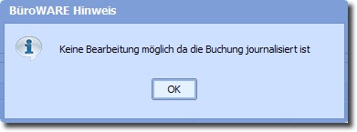 Ist die Buchung journalisiert, erhalten Sie eine  entsprechende Meldung.