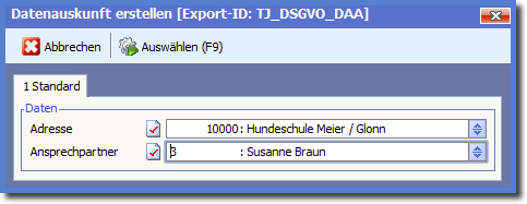 Mit der Taste [F9] bzw. Klick auf die Schaltfläche „Auswählen (F9) wird die Datenauskunft erstellt.