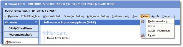 Dieser Teil des Handbuchs dient der Erläuterung der Programmfunktionen zusätzlicher Werkzeuge, die in der Ansicht "BüroWARE komplett" unter dem Menüpunkt "Extras" zu finden sind.