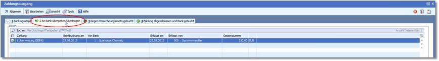 Die andere wurde bereits an die Bank übergeben und befindet sich jetzt in der Registerkarte "2  An Bank übergeben/übertragen".