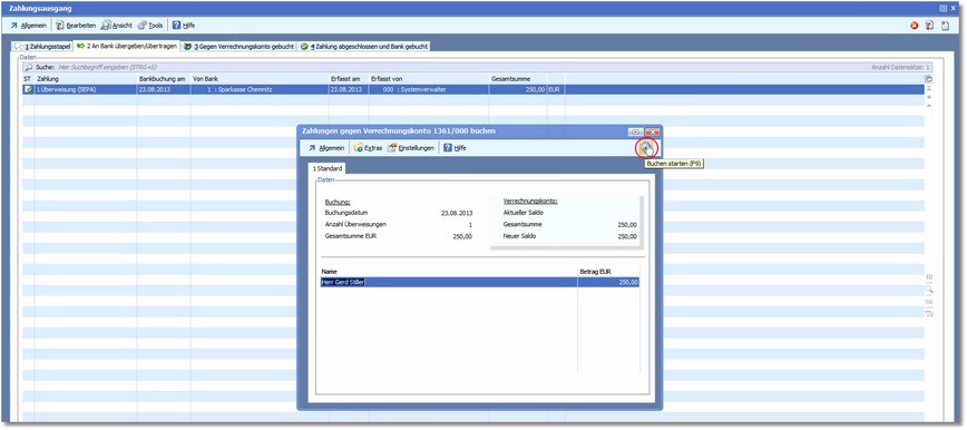 12. Starten Sie den Vorgang mit der Funktionstaste [F9] oder Klick auf den Quicktoolbutton "Buchung starten".