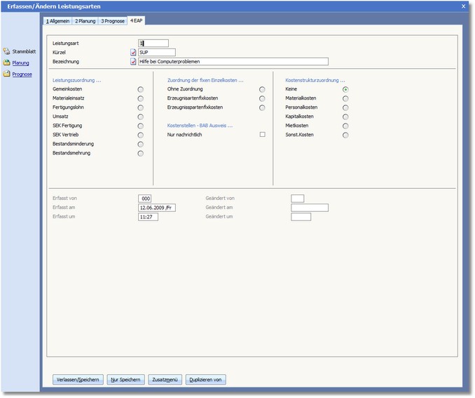 << Hier KLicken um eine Inhaltsübersicht anzuzeigen >> Navigation: Kostenrechnung > Stammdaten > Leistungsarten > Die Karteikarte "EAP" |