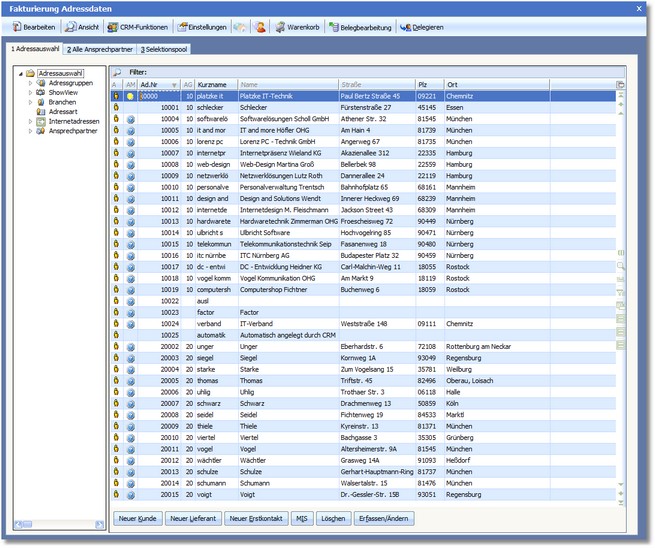 1. Rufen Sie die zentrale Adressbearbeitung auf.
