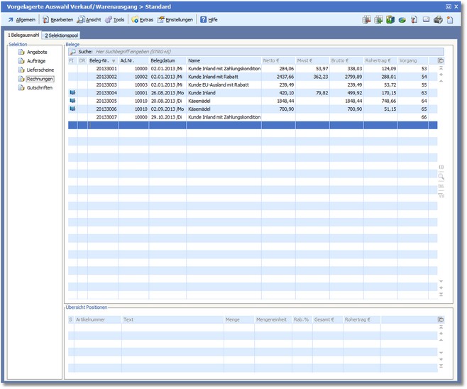 Das Programm öffnet die Belegtabelle für den Warenausgang.
