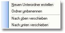 In der Baumauswahl können Sie mit der rechten Maustaste das Kontextmenü aufrufen. Hier stehen Ihnen Funktionen für die Strukturierung der Baumauswahl zur Verfügung. Sie können neue Unterordner erstellen, Ordner umbenennen und nach oben bzw. unten verschieben.
