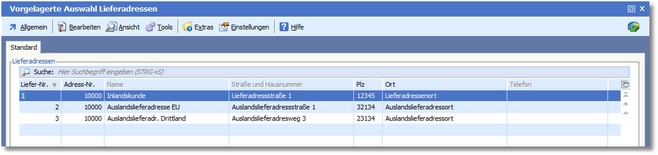 Lieferadressen werden in einem eigenen Stamm verwaltet. Somit ist es möglich, für jede Adresse nahezu beliebig viele Lieferadressen zu erfassen.