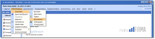 1. Klicken Sie mit der Maus im Hauptmenü auf "CRM/OfficePlaner > Stammdaten > Personalstamm".