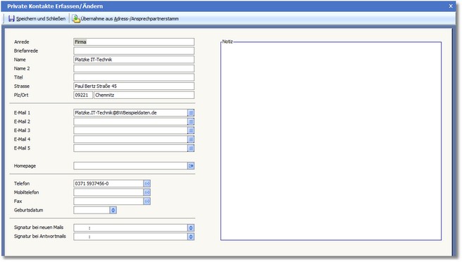 << Hier KLicken um eine Inhaltsübersicht anzuzeigen >> Navigation: CRM/OfficePlaner > Mailsystem > Mail einrichten > E-Mail-Assistent - Extras > Privates Adressbuch > Adressen - Neuanlage oder Änderung |