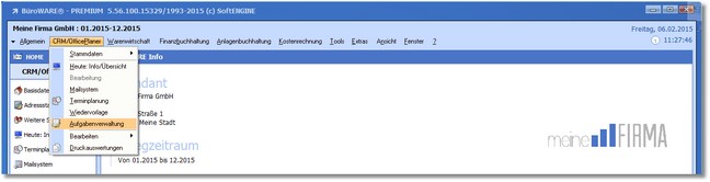 1. Klicken Sie mit der Maus im Hauptmenü auf "CRM/OfficePlaner > Aufgabenverwaltung".