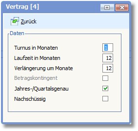 Tragen Sie in dieses Feld ein, um wie viel Monate der Vertrag sich automatisch verlängert, wenn dieser nicht gekündigt wird.
