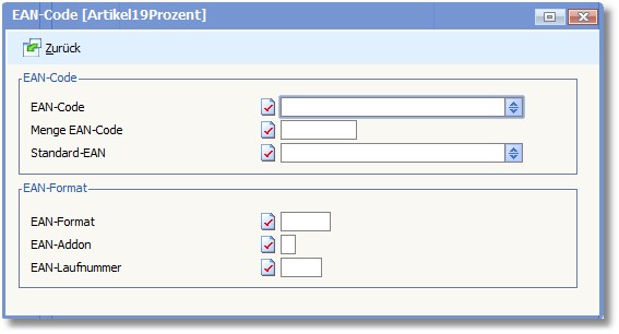 So können Sie Einstellungen für den EAN-Code des Artikels festlegen: