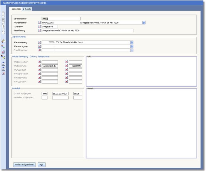 << Hier KLicken um eine Inhaltsübersicht anzuzeigen >> Navigation: Warenwirtschaft > Stammdaten > Seriennummern > Die Karteikarte "Allgemein" |