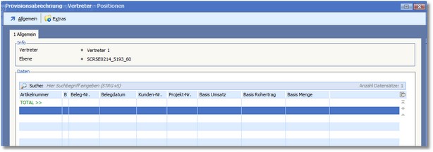 5. Um die einer Abrechnungsebene zugrunde liegenden Belegpositionen anzuzeigen, drücken Sie die Funktionstaste [F11] oder wählen Sie den Menüpunkt "Extras > Abrechnungspositionen".