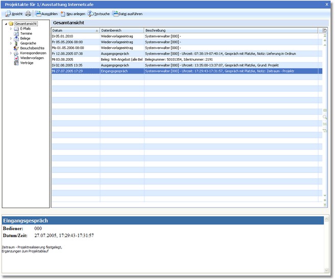 << Hier KLicken um eine Inhaltsübersicht anzuzeigen >> Navigation: Warenwirtschaft > Stammdaten > Projekte > Projektakte |