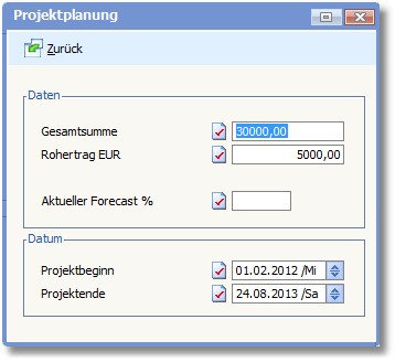 Ist der Auftrag für das Projekt noch nicht erteilt, können Sie hier die Auftragswahrscheinlichkeit in Prozent hinterlegen.