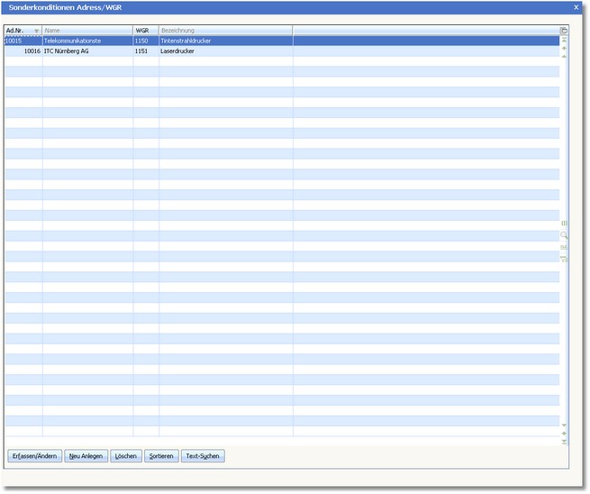 << Hier KLicken um eine Inhaltsübersicht anzuzeigen >> Navigation: Warenwirtschaft > Stammdaten > Konditionen > Adress/Warengruppen |