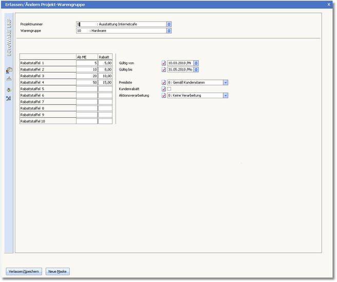 Es stehen Ihnen insgesamt 10 Mengenstaffeln zur Verfügung. Zu jeder Mengenstaffel können Sie einen Warengruppenrabatt festhalten.