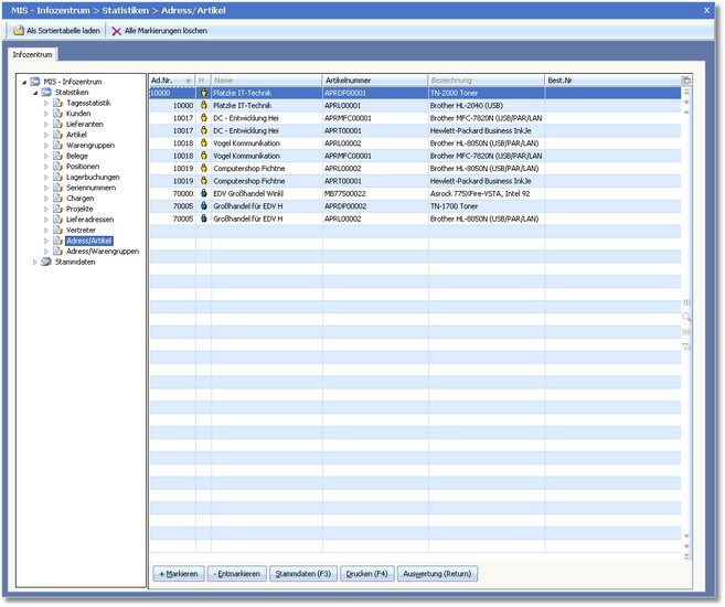 Navigation:  Warenwirtschaft > Auswertungen > Informationszentrum > MIS-Infozentrum >