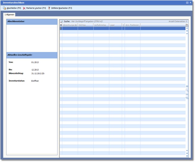 Das Programm öffnet das Fenster "Inventurabschluss".