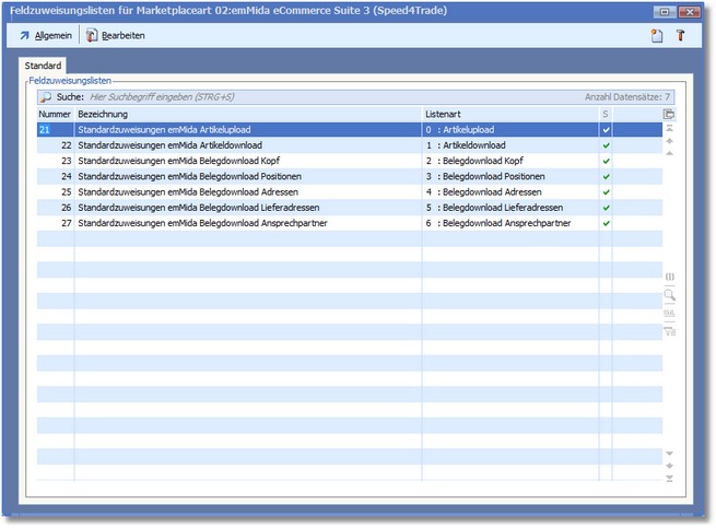 Hier haben Sie nun auch die Möglichkeit, die Feldzuweisungslisten zu ändern.