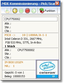 Die Auftragsnummer des nächsten zu kommissionierten Auftrags wird nun angezeigt.