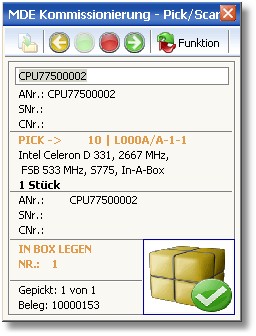 Der kommissionierte (gepickte) Artikel wird nun mit einem grünen Häkchen versehen.