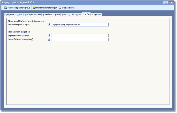 In dieser Karteikarte sind die Schnittstellen-Einstellungen für das Versandsystem VLog zu hinterlegen.