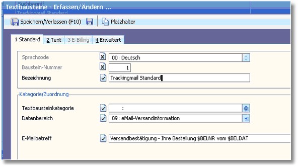 Für die Neuanlage eines entsprechenden Textbausteins beachten Sie bitte das Kapitel Textbausteine.