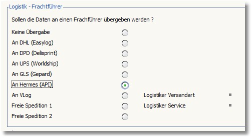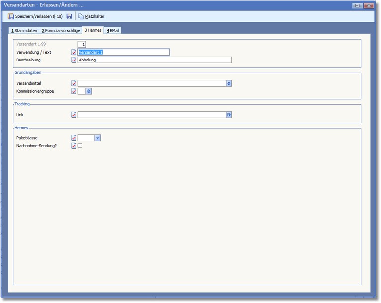 So sollten die Einstellungen einer Versandart für Hermes aussehen:
