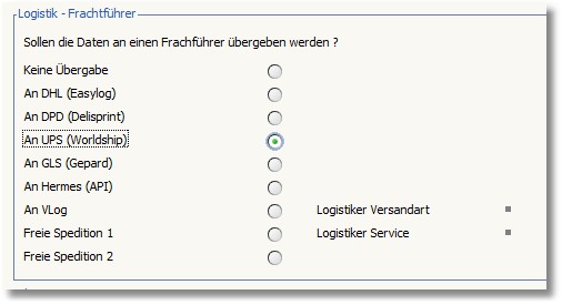 So sollten die Einstellungen einer Versandart für UPS Worldship aussehen: