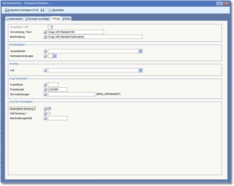 << Hier KLicken um eine Inhaltsübersicht anzuzeigen >> Navigation: Warenwirtschaft > Lagerverwaltung > Lager-/Logistikcenter > Logistiker "VLog" > Beispiel 2 - Standard mit Nachnahme |